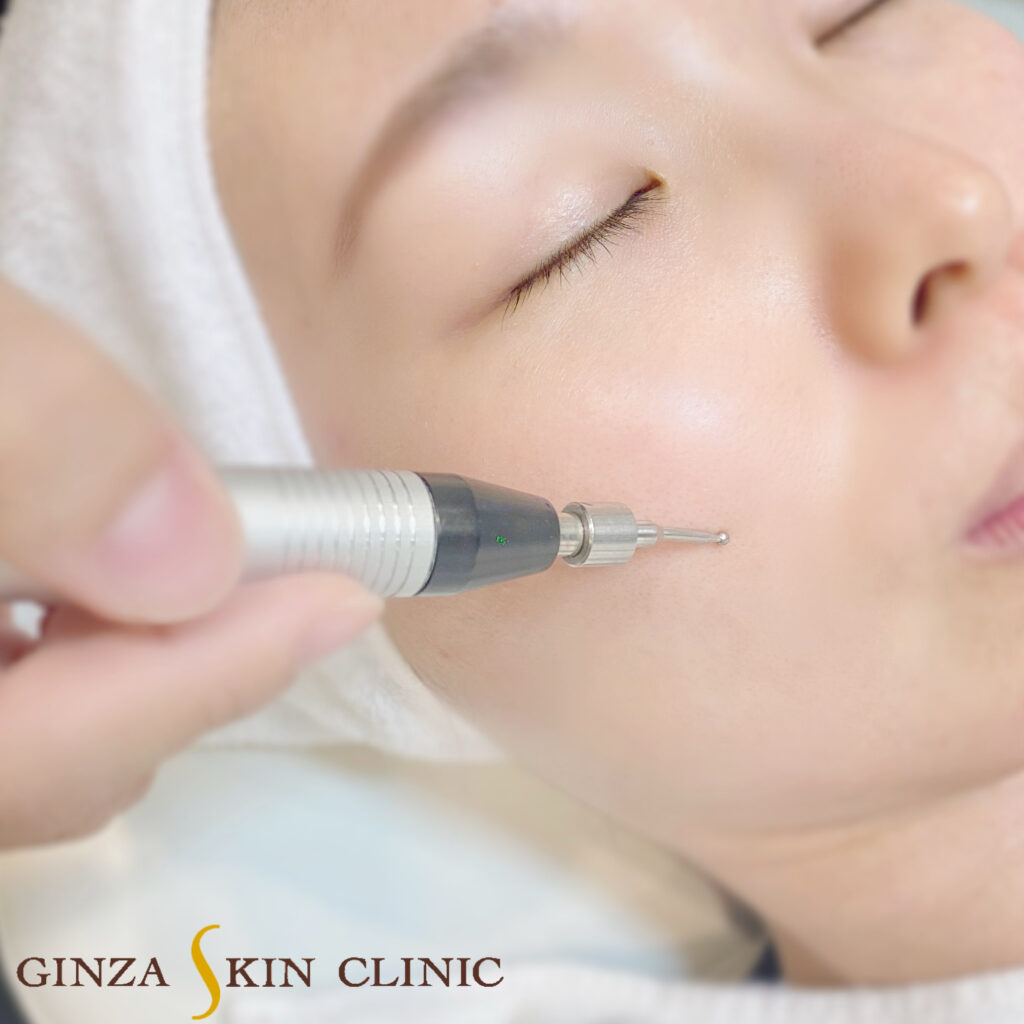 皮膚表面の強い剥離(フロスティング)をさせずに真皮深層へアプローチし、ハリ・ツヤを引き出します。